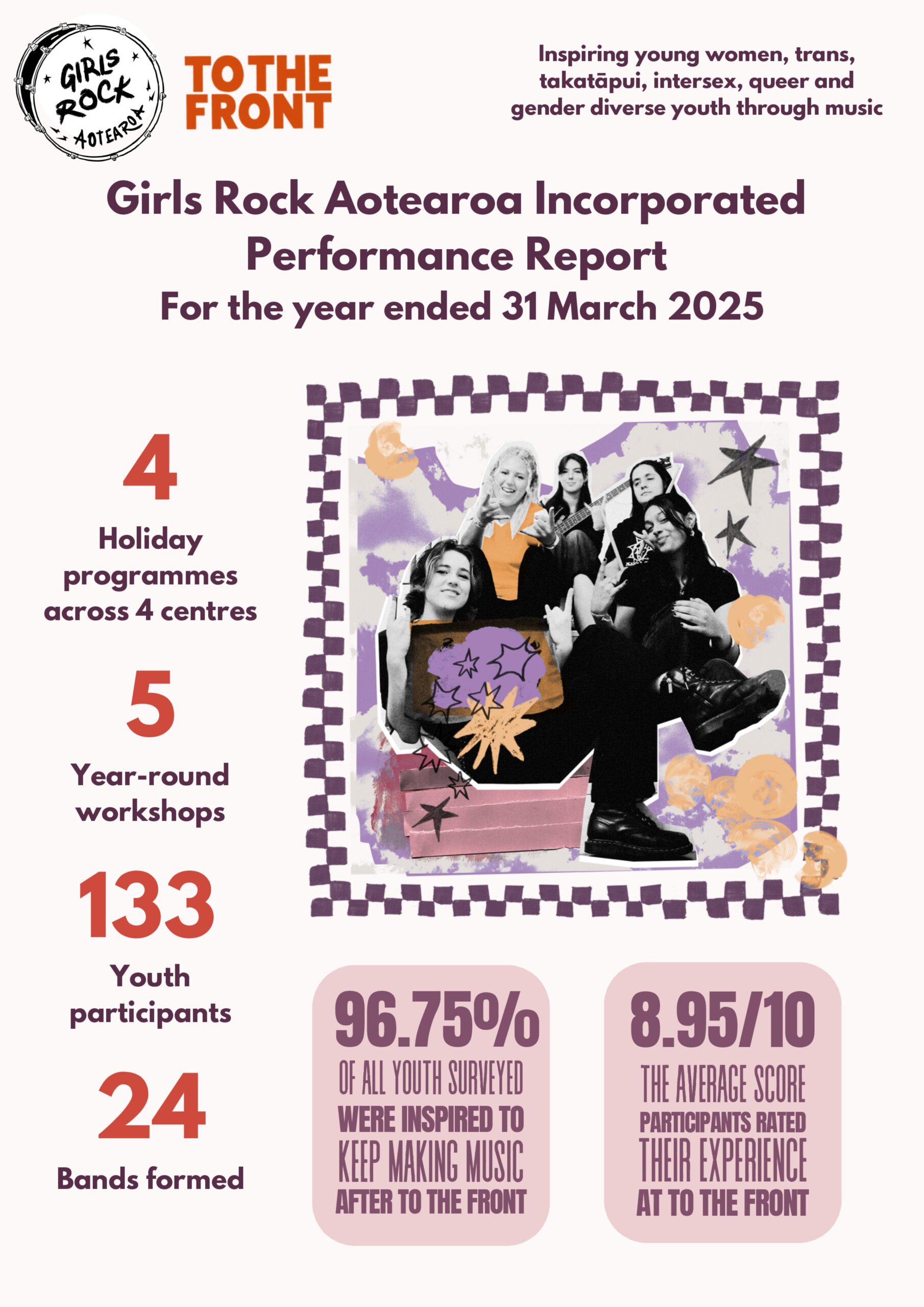 Check out our Annual Return for the year end 31 March 2025 to learn all about what we do at Girls Rock Aotearoa!